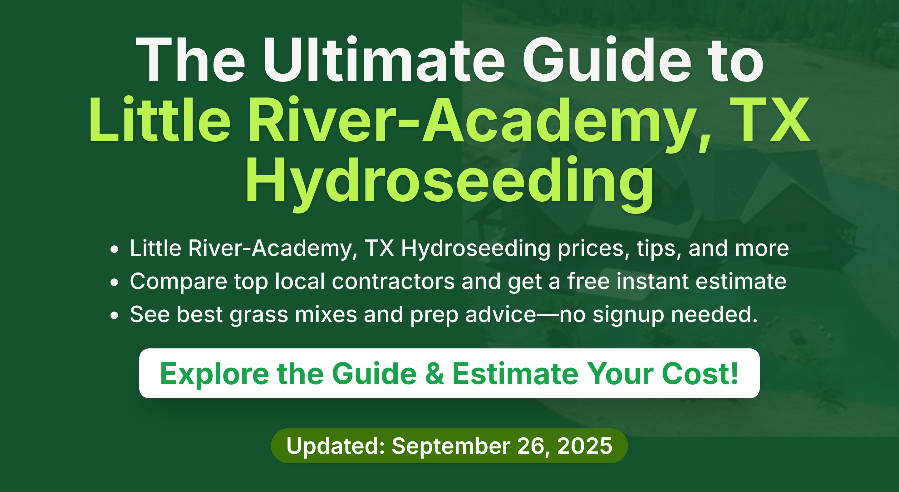 - Timing: Schedule your hydroseeding during optimal germination seasons for Little River-Academy, typically early spring or fall, when temperatures are conducive to growth.